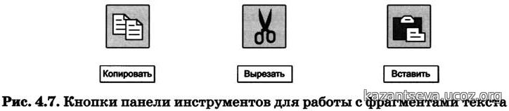 • копировать в буфер обмена (сам фрагмент остаётся на своём прежнем месте, а его точйая копия помещается в буфер обмена);